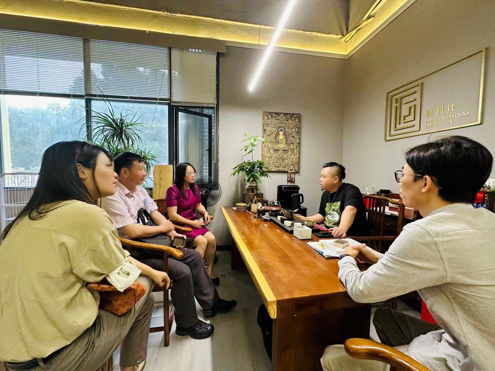 图1、2:王书记一行与广州蓝弧文化传播有限公司交流合影