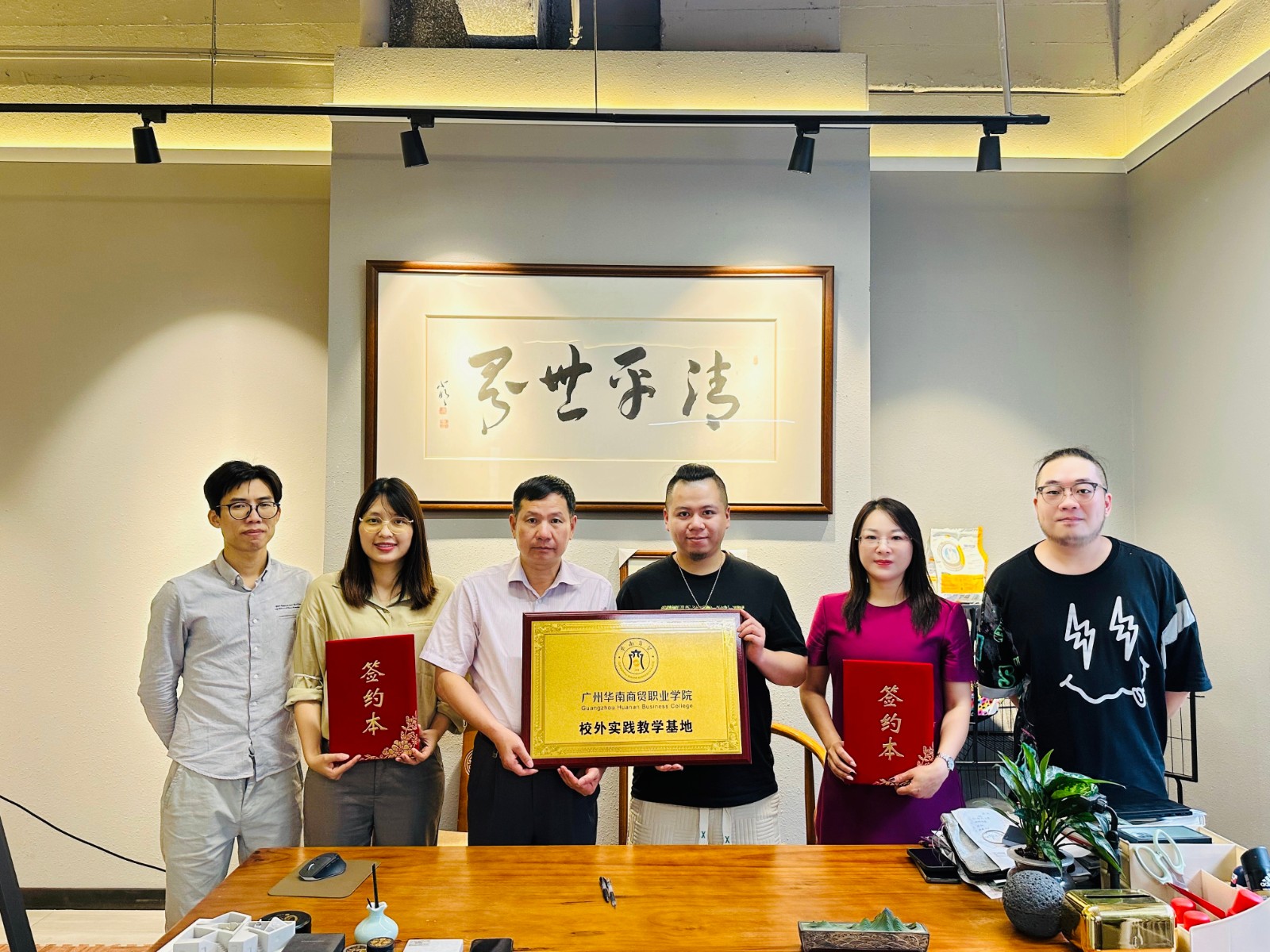 图3、4:王书记与广州逅时代设计有限公司交流校企共建校外实践教学基地签约授牌