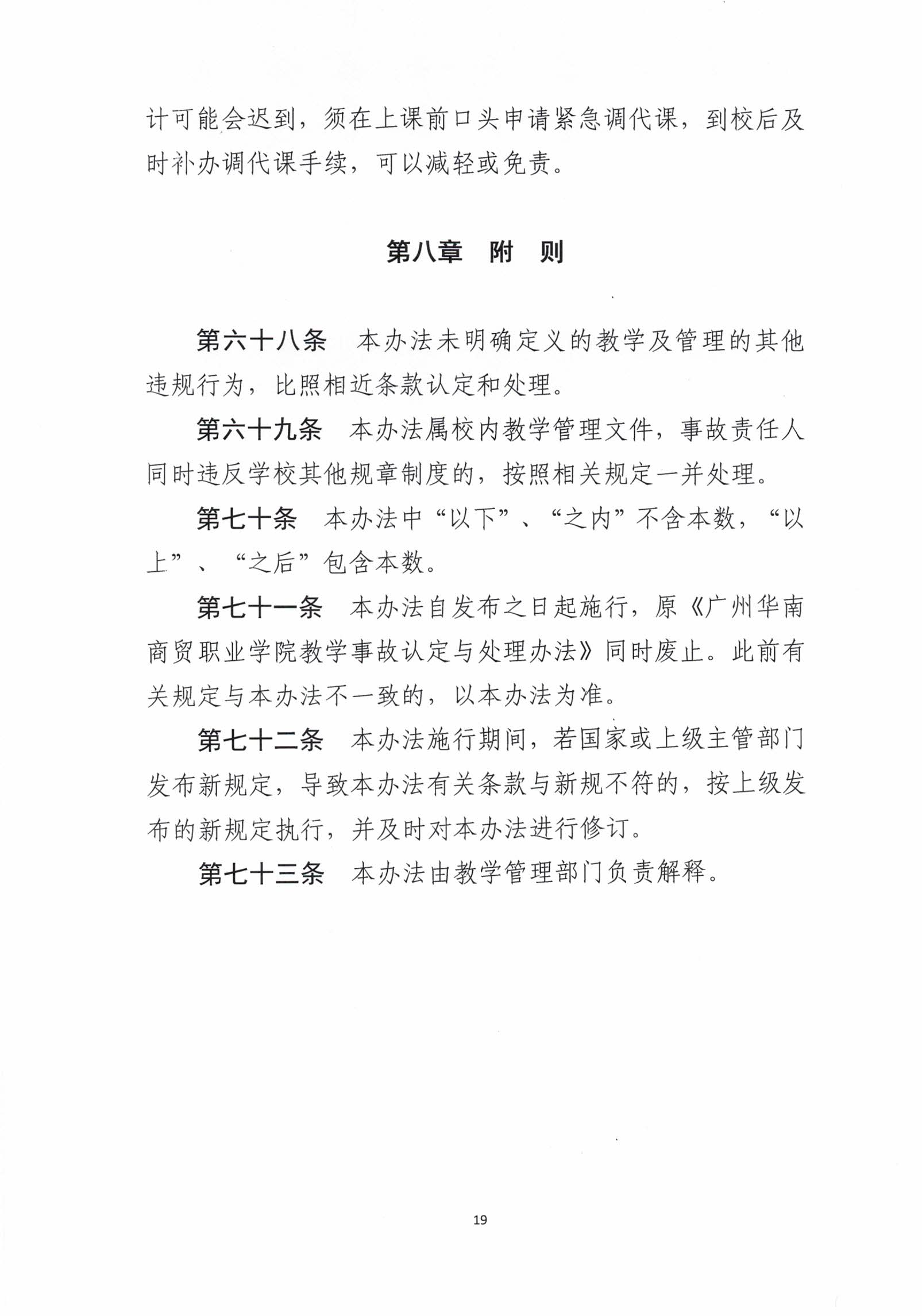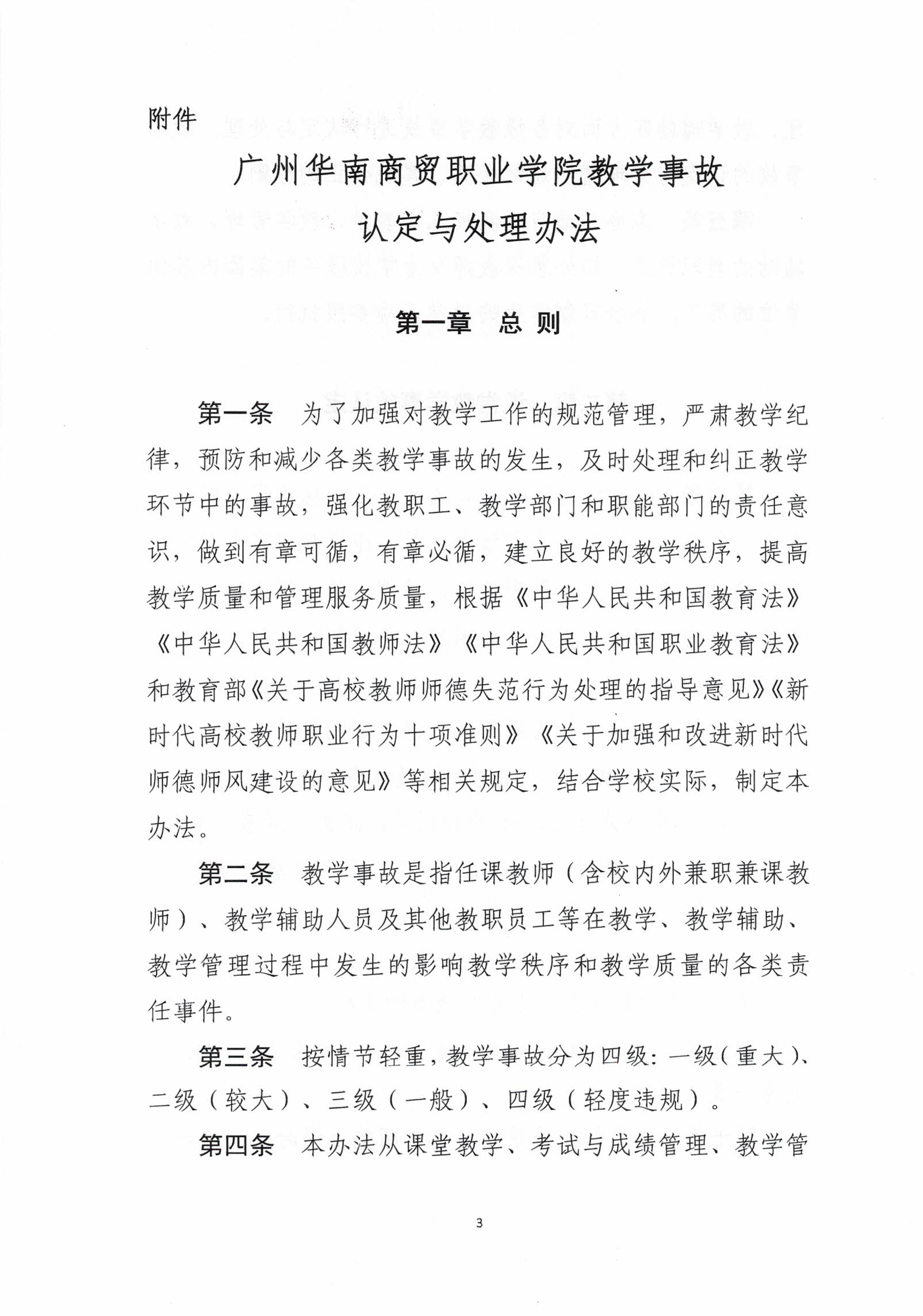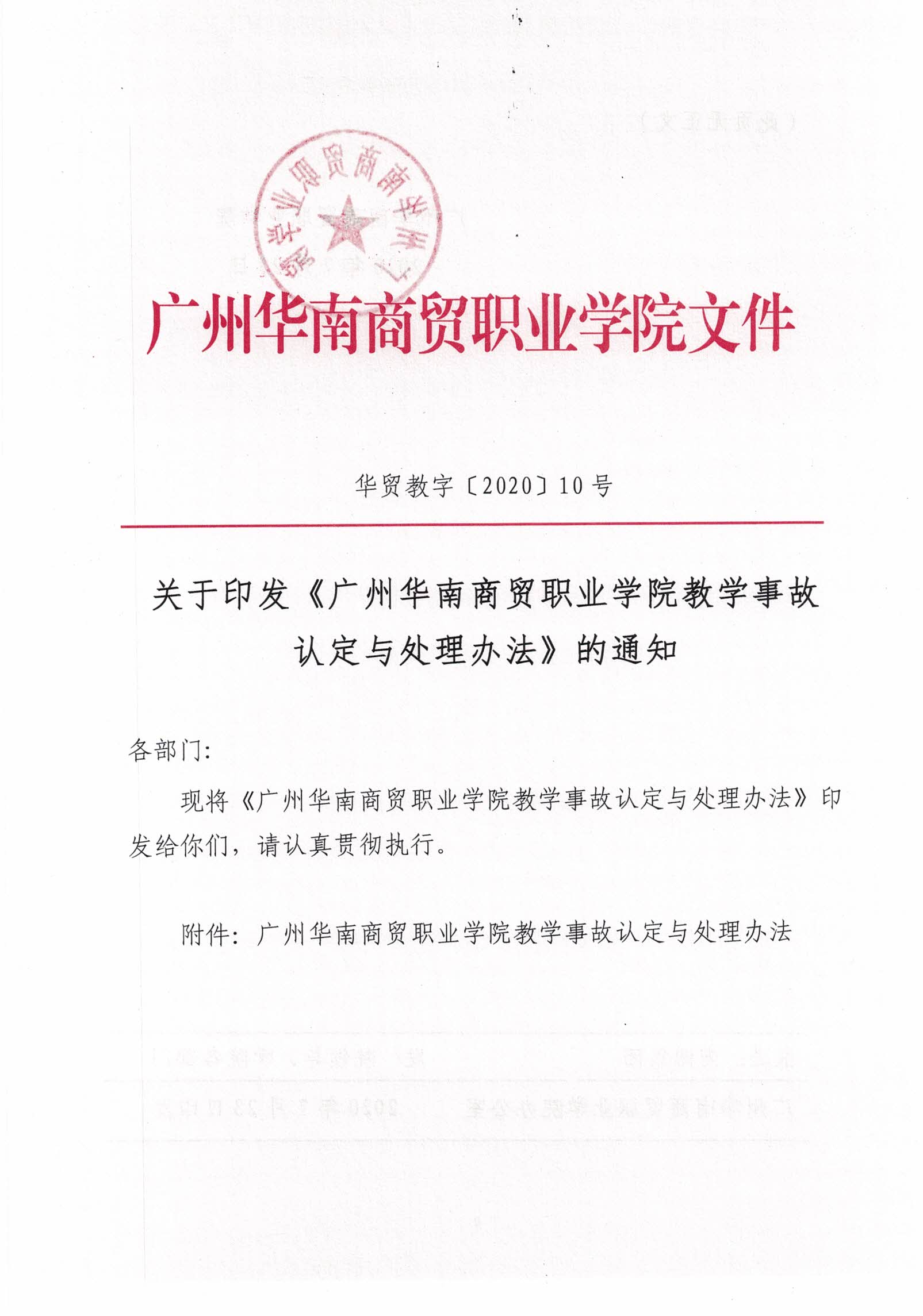 广州华南商贸职业学院教学事故认定与处理办法