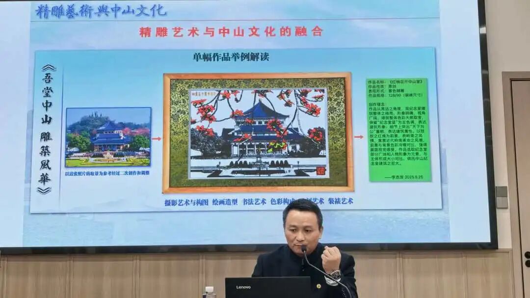 2025年11月7日,广州华南商贸职业学院李志龙精雕技能大师工作室李志龙教授的讲座在广州中山纪念堂红棉课堂举行。本次讲座是广州中山纪念堂的系列活动之一。该系列活动旨在配合《吾堂中山——雕筑风华》李志龙精雕技能大师工作室精雕艺术作品展,以纪念孙中山先生逝世100周年。设计与传媒学院黄文益副院长和大师工作室负责人侯石明老师参加此项活动。