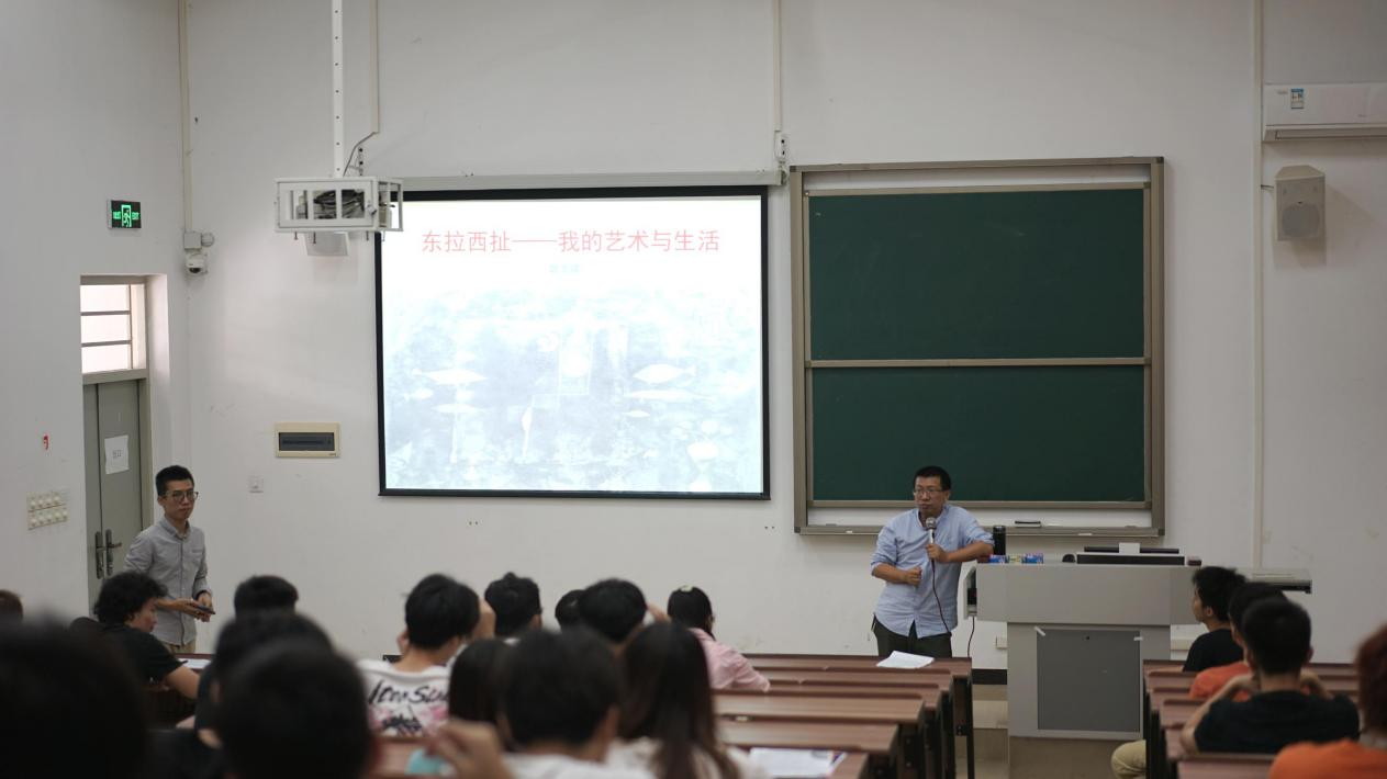 6月15日下午,我院在教学楼2-102教室举办了以“提高审美的有效路径与方法”为主题的学术讲座。讲座邀请到中国美术家协会会员,顺德南风美术教育机构教学总监南风艺术部落核心会员胡宇鸣老师主讲。讲座主要以围绕美在生活中的运用、基本审美法则、提高审美的有效路径、提高审美的具体方法,以及如何从一种美的形式入手,进行设计实践讲解。
