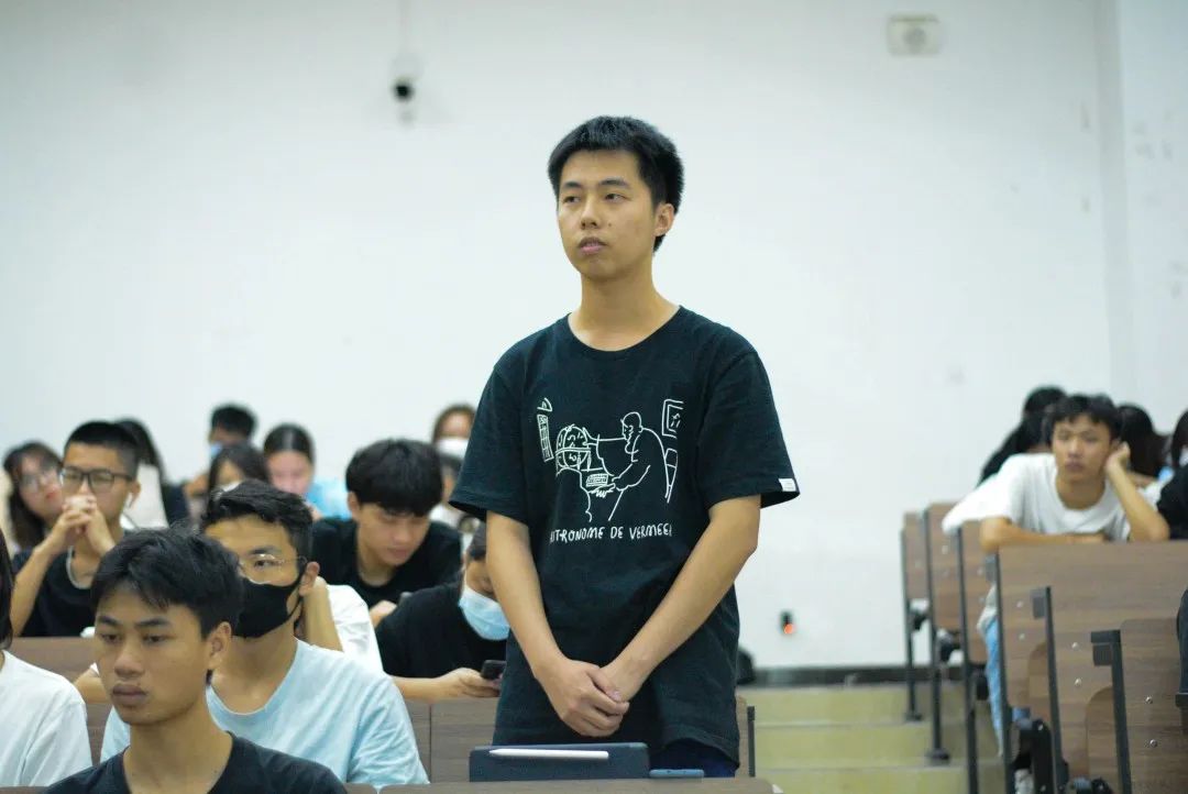 现场互动环节,我院21级视觉传达专业的彭冠钦同学提问:“老师,您在创作的过程中有经验可以跟我们分享吗?”