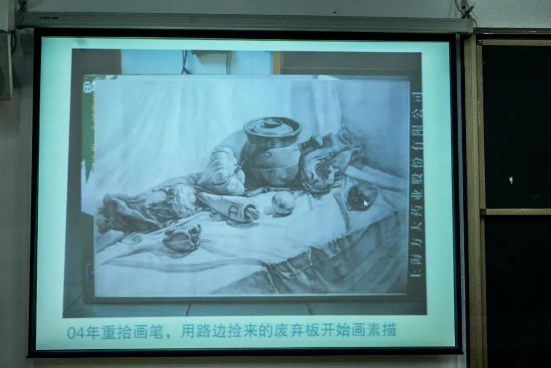 讲座中,黄奕老师把创作过程中的想象与联想、灵感与直觉、理智与情感等因素由浅入深地为师生们进行逐一分析讲解,给予了大家多方面的启示。同时通过现场展示自己的个人学术作品,包括素描画、油画、水彩画等,让大家对作品中体现的形象性、想象性、情感性有了更深层的认知。