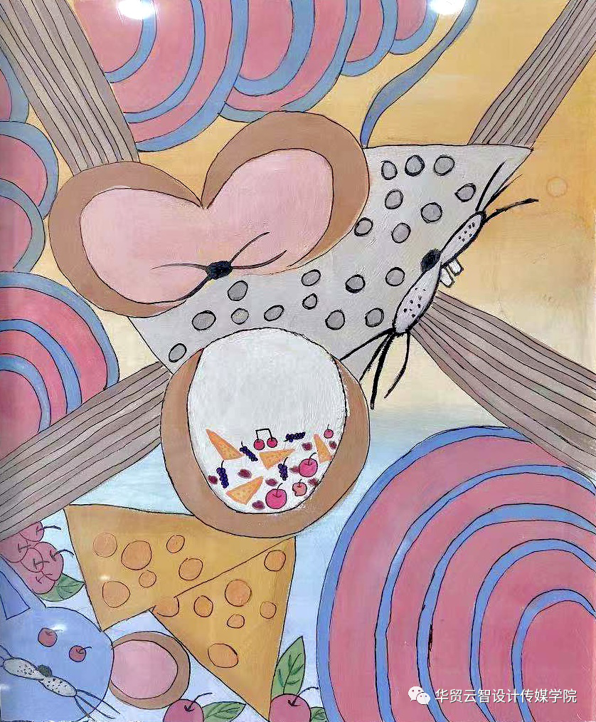 作品简介:设计作品提取了色彩原色,利用重复构成、发射构成完成新的创作。创意灵感来自偷吃的杰瑞。