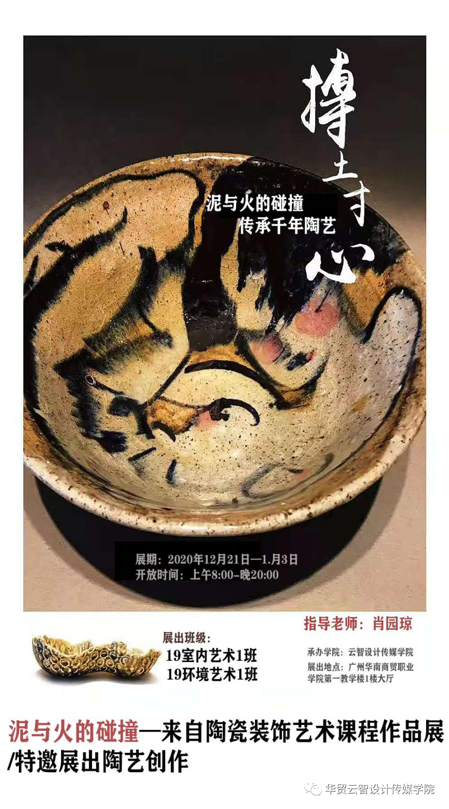 此次展览展示了2019级环艺与室内班在陶瓷装饰设计课程釉下及釉上作品