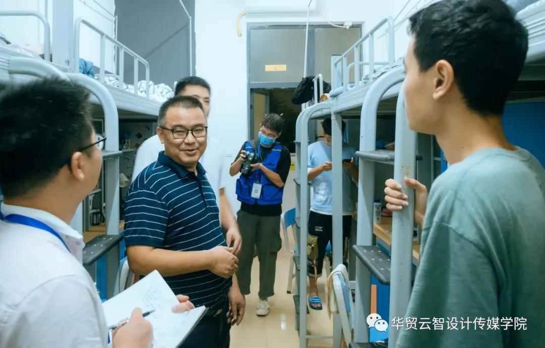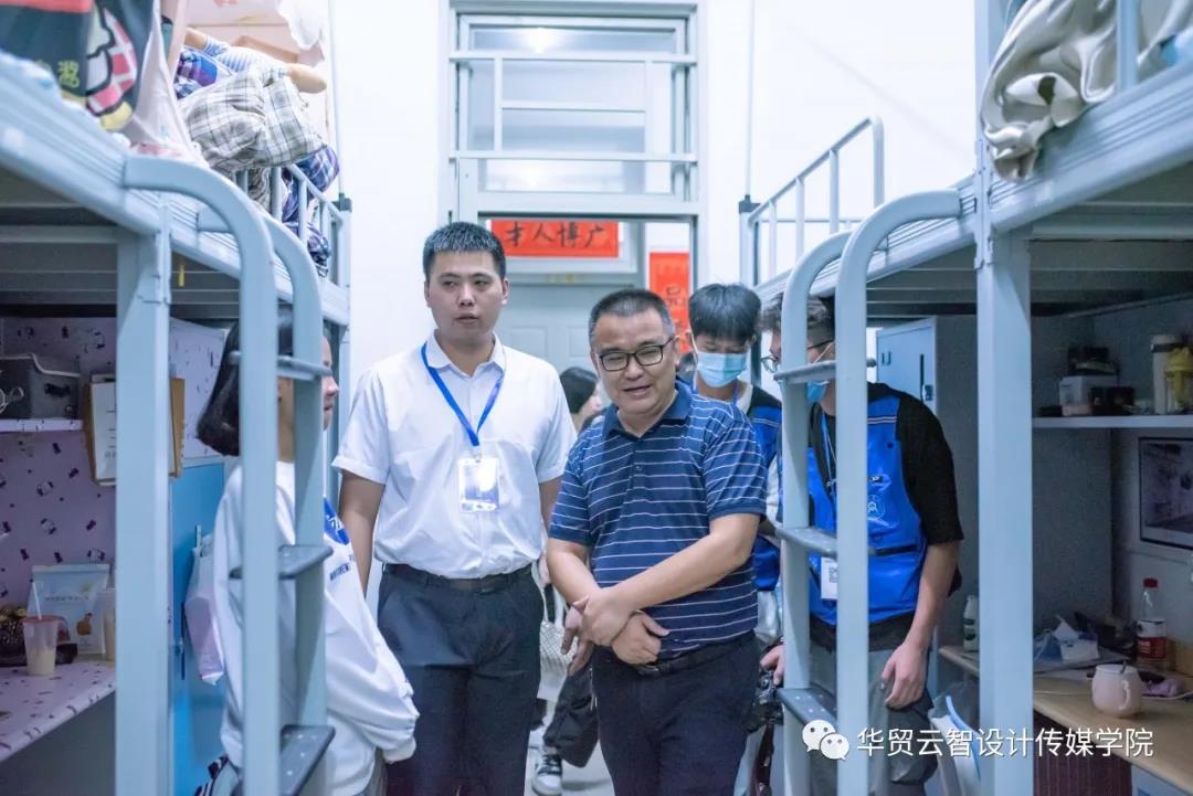 2020年10月11日晚,学校副校长唐小华、云智设计传媒学院副院长王珂、书记钟法声、辅导员刘晔老师对我院新生宿舍进行走访。此次走访,目的在于及时了解新生住宿情况,并帮助解决新生军训期间出现的生活问题。同学们也对领导老师的到来表示热烈欢迎。