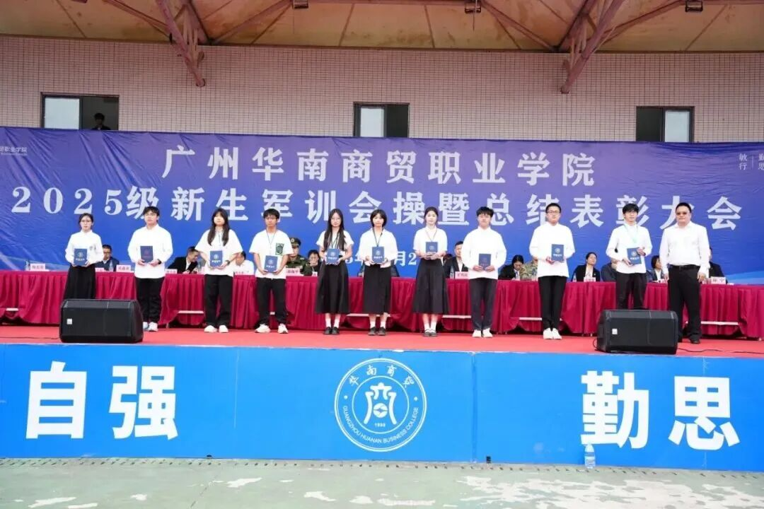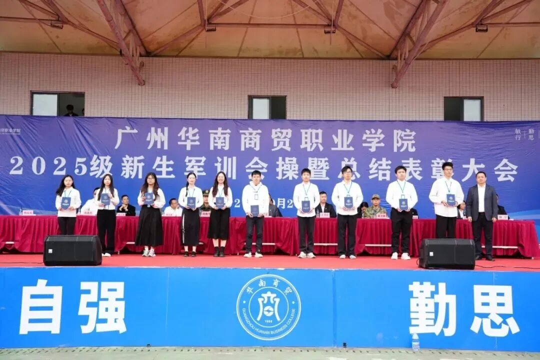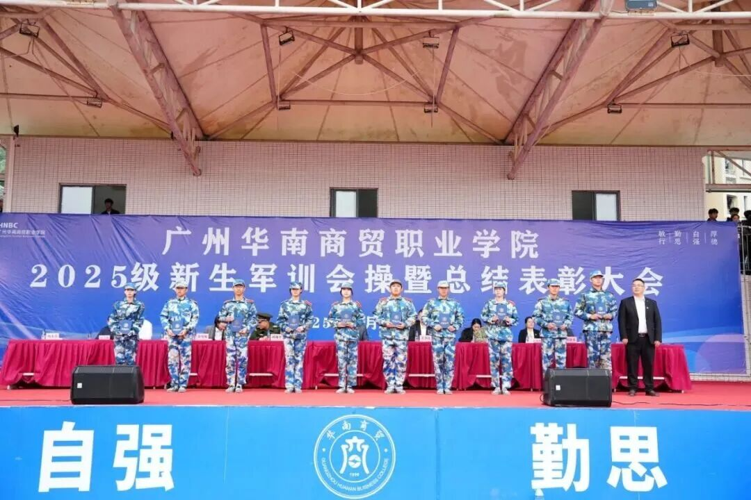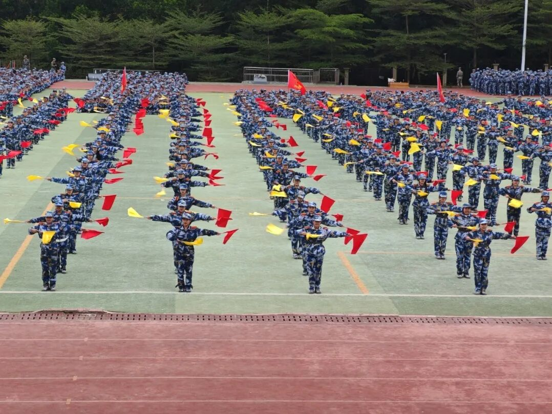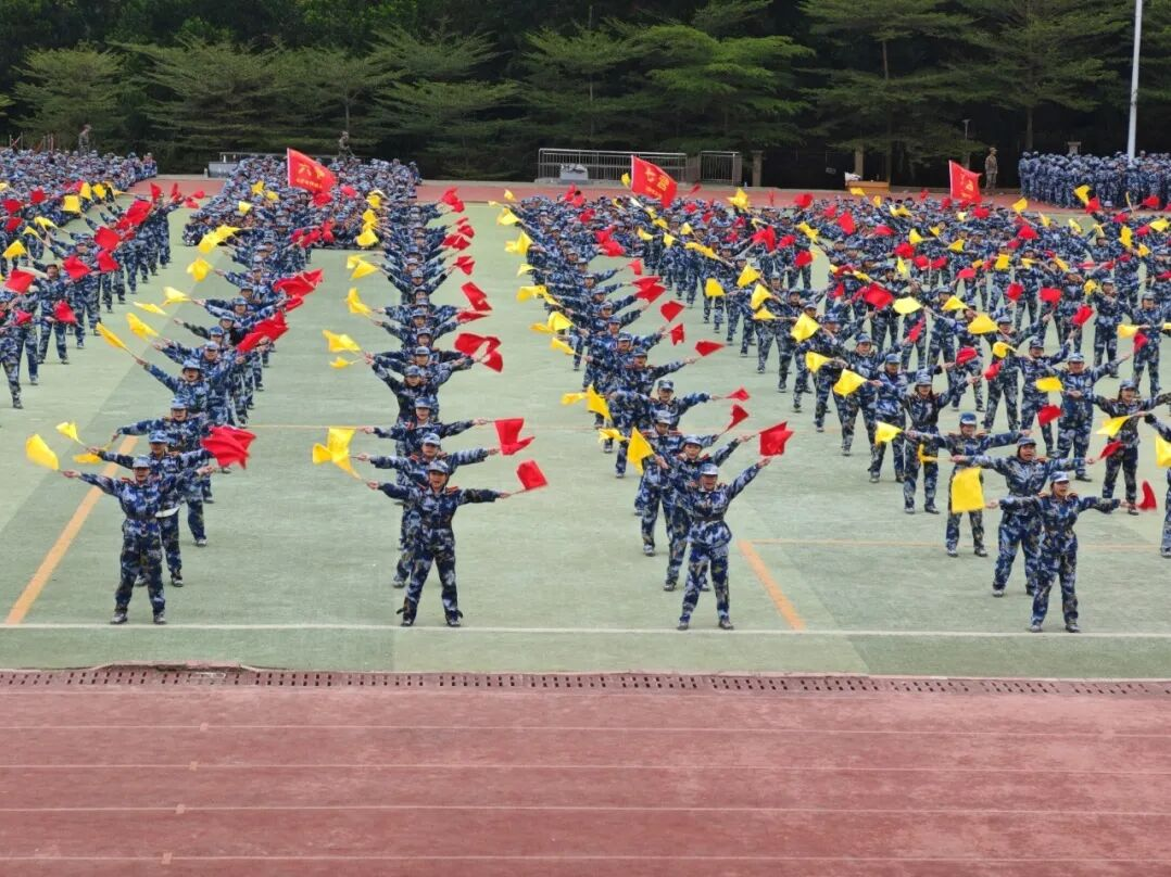 2025年9月23日上午,广州华南商贸职业学院运动场上气氛庄重而热烈,2025级新生军训会操在此隆重举行。学校领导、承训部队领导与教官、各职能部门负责人、各二级学院院长及学工副院长、2025级辅导员与全体新生共同出席,见证学子们历经14天军训洗礼后的成长与蜕变。