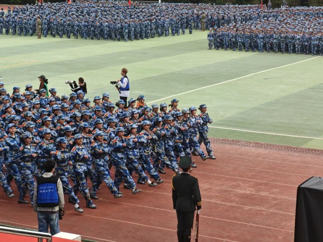 激昂的军乐声中,各连队依次通过主席台接受检阅。同学们步伐整齐、口号响亮,展现出军训锤炼出的过硬作风与团队凝聚力。